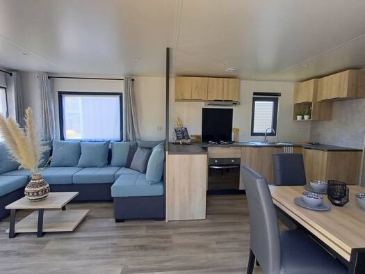 IRM Aventura 3 Z45 Im Inneren betreten Sie einen geräumigen Wohnbereich mit direktem Zugang zur sonnigen Terrasse - perfekt für lange Sommerabende oder eine Tasse Kaffee in der Morgensonne. Das gemüt...