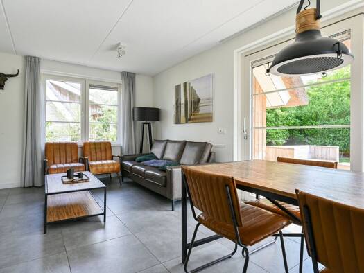 Genießen Sie Ruhe, Platz und Komfort in diesem wunderschön gelegenen Ferienchalet auf einem großzügigen Grundstück, umgeben von viel Grün. Im Inneren betreten Sie einen geräumigen Wohnbereich mit dir...
