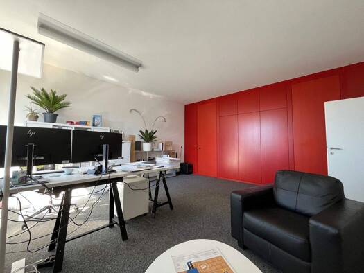 Am Ortsrand von Schwarzach gelangt ein Büro mit ca. 43 m² zur Vermietung. Die Fläche umfasst einen Vorraum, zwei separate Büroräume (einen davon derzeit mit zwei Arbeitsplätzen, der andere ist als Ei...