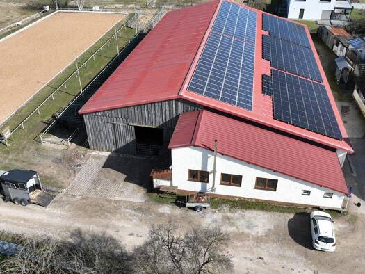 Objektbeschreibung Komplette Reitanlage mit 30 Boxen, Reithalle, Reitplatz, Wohnhaus, Einliegerwohnung - 2 große PV Anlagen auf neuesten Stand. Vollexistenz, Reitschule, Pferdezucht uvm. insgesamt au...