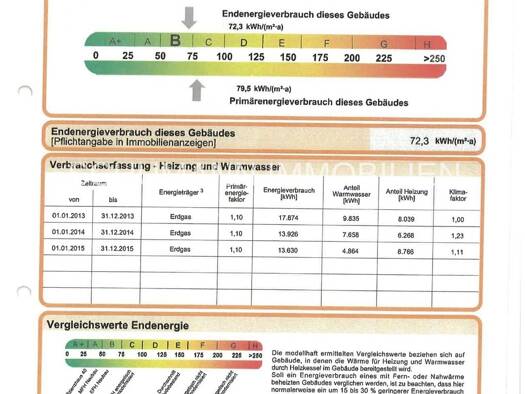 Objekt-Nummer: F482 Art des Energieausweises: Verbrauchsausweis Endenergieverbrauch in kWh/(m² a): 112,7 Wesentlicher Energieträger der Heizung: Erdgas Energieeffizienzklasse: D Baujahr lt. Energieau...