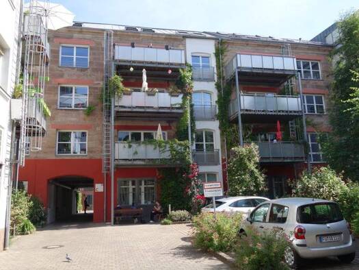 Der Charme der vielen kleinen Innenhöfe der alten Spiegelfabrik die zur Gründerzeit gebaut wurde lädt zum Verweilen ein. Wilder Wein rank über die restaurierten Fassaden. Alte Industrierelikte und ne...