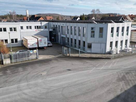 Gewerbeimmobilie, bestehend aus mehreren Gebäudeteilen verschiedenen Baujahrs sowie Freiflächen: Zwei ebenerdige Hallen von ca. 529 m² (beheizt) und ca. 2.127 m² Größe (unbeheizt, kleiner beheizter B...