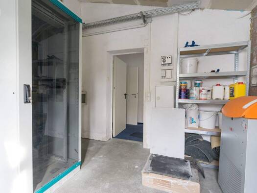 Objektbeschreibung Wohn und Geschäftshaus Raumaufteilung Die Räume im Erdgeschoss sind durch eine wiederherausnehmbare Trennwand geteilt, und teilen sich in 2 Einheiten auf. Die eine Einheit mit Ther...
