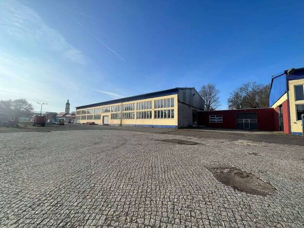 7 Produktionshallen mit angrenzendem Bürogebäude - Freifläche für Parkmöglichkeiten / Abstellfläche eingezäunt, neuen Sanitäreinrichtungen, Büros, sowie Sozialräumen, Wendeund Parkmöglichkeiten für L...