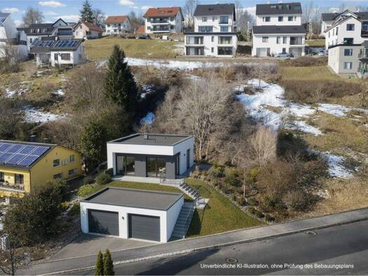 Das Grundstück liegt in ruhiger und sonniger Südwesthanglage in einer Sackgasse. Laut Bebauungsplan kann das Grundstück mit einem Einfamilienhaus mit Einliegerwohnung bebaut werden. Auf Wunsch sind w...