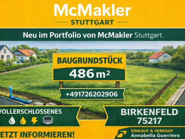 Baugrundstück in Mühlacker - ideal für private Bauherren oder Bauträger Zum Verkauf steht ein großzügiges, voll erschlossenes Baugrundstück mit einer Fläche von 893?m² in einer begehrten Wohnlage von...