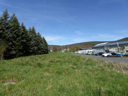 Ebenes Grundstück zwischen zwei Gewerbeobjekten am Stadtrand. Sehr gute Anbindung an die B45.