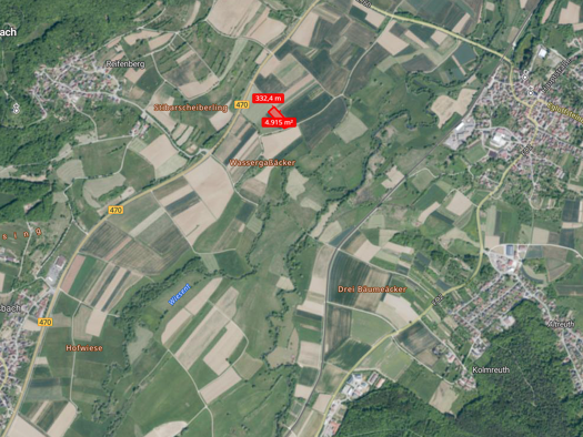 Zum Verkauf steht eine 4.915 m² große Ackerfläche in der Gemarkung Pretzfeld, Flurstück 876 („Lanzenfelder“). Die Fläche liegt inmitten eines intensiv genutzten Agrargebiets zwischen Pretzfeld und We...