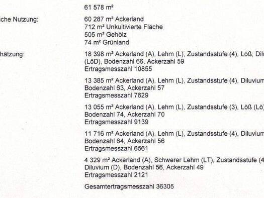 Die Eckdaten auf einen Blick: - Kulturart: Ackerland (A) - Größe: 61.578 m² (6,16 ha) - Lage: Gemarkung Wildenberg - in Ortsnähe von Wildenberg - Anbindung: hervorragende Zufahrt auf 2 Seiten (Asphal...
