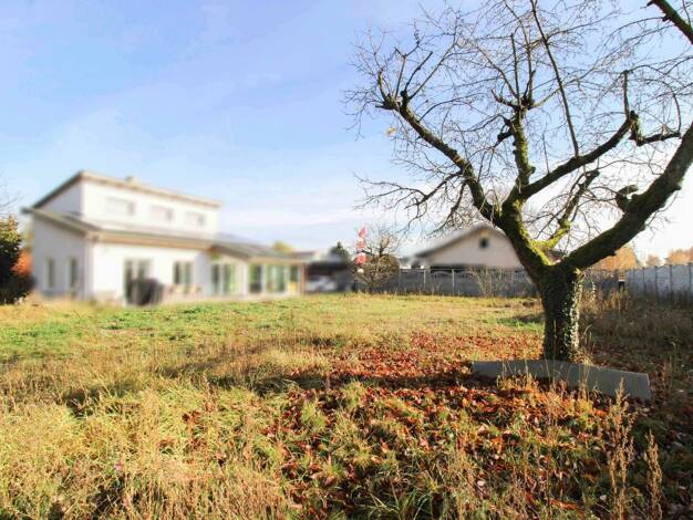Dieses exzellent in den Westen weisende Baugrundstück (Flurstück 191) ist in zwei jeweils ca. 540 m2 große Flächen teilbar. Die Grund-flächenzahl (GFZ) beträgt 0,4. Auf dem vorderen, bis Sommer 2027 ...