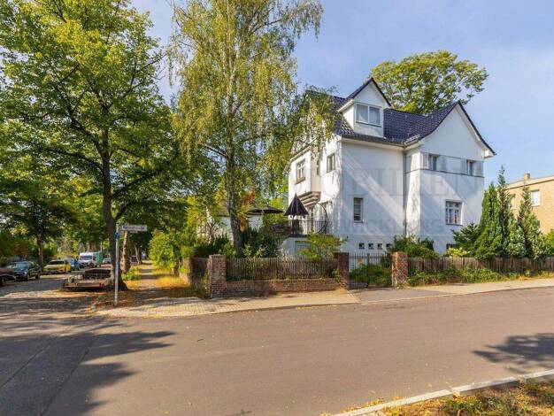 Das Grundstück liegt in einem überwiegend von Einfamilienhäusern und Doppelhäusern geprägten Wohngebiet an der Berliner Stadtgrenze. An das Grundstück angrenzend befindet sich ein unter Denkmalschutz...