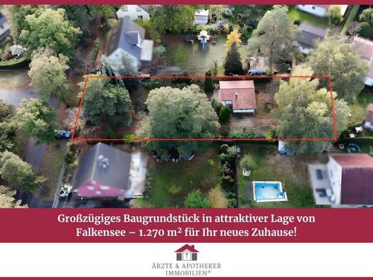 Das Grundstück befindet sich in einer der schönsten und dabei ruhigsten Falkenseer Lagen. Mit über 2.200 qm ist das exklusive Grundstück zudem teilbar und könnte für beispielsweise zwei Einfamilienhä...
