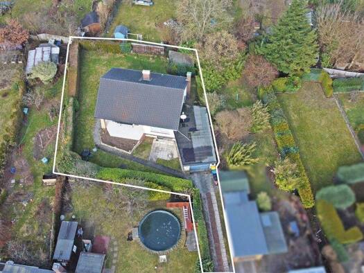 Zum Verkauf steht ein attraktives 975 m² großes Grundstück in ruhiger Wohnlage von Hamburg-Rahlstedt. Das Grundstück ist derzeit mit einem Einfamilienhaus, Gartenhaus, Außenpool sowie zwei Garagen be...