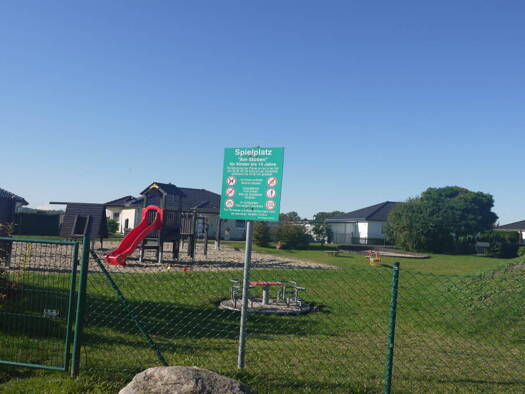 Das Baugrundstück ist voll erschlossen und baureif. Das Baurecht ist durch die Festlegungen des gültigen Bebauungsplanes Nr. 1 Am Stoben gesichert. Errichtet werden dürfen hier Häuser im Bungalowstil...