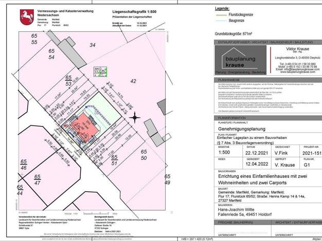Es besteht für das Grundstück kein Bebauungsplan. Nach Auskunft der Stadt Achim möchte diese eine Bauvorplanung, mit der dann ein neuer B-Plan für dieses Grundstück erstellt wird. Es wird zugesichert...