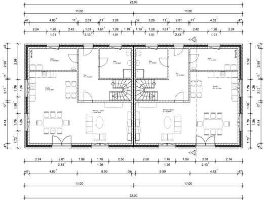 Dieses Baugrundstück mit einer Grundstücksfläche von 1287 m² umfasst eine Vorplanung über zwei großzügige Doppelhäuser (vier Doppelhaushalten) und bietet somit ausreichend Platz für individuelle Wohn...