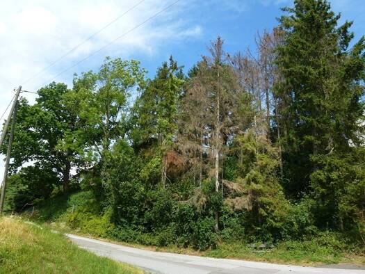 Diese Kombination ist schon selten und ungewöhnlich: keine 500 m zu Fuß bis in die Ortsmitte und nur ein paar Schritte bis in den (eigenen) Wald! Das angebotene Flurstück teilt sich auf in 1051m² Woh...