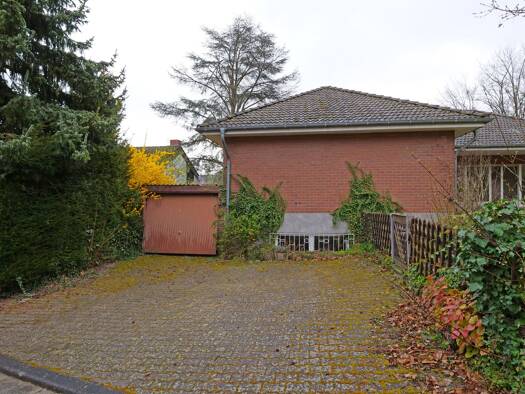 Das Grundstück verfügt über ein kleines Haus, dass nach einer gründlichen Renovierung vermietbar wäre. Es gibt einen Innenhof mit großer Scheune (Halle/Werkstatt) und Garten dahinter