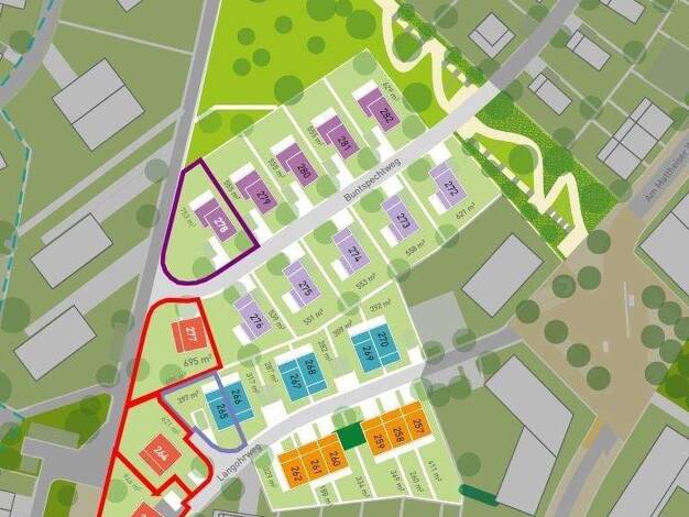 Das Grundstück umfasst ca. 740 m² und ist voll erschlossen. Es liegt im Geltungsbereich eines rechtskräftigen Bebauungsplans (B-Plan) und ist als Allgemeines Wohngebiet (WA) ausgewiesen. Ein Bauantra...