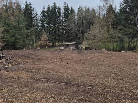 Grundstück aus zwei nebeneinander liegenden Parzellen, beide ca. 2.600 m² groß. Die linke Parzelle von ca. 2.600 m² kann als Parkplatz genutzt werden, die rechte Parzelle von ebenfalls ca. 2.600 m² k...