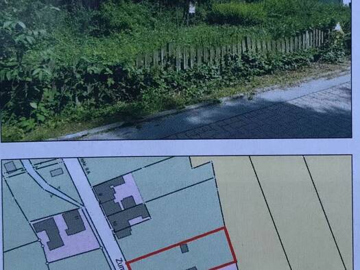 Voll erschlossenes Baugrundstück 1.038 qm, Wasser, Strom, Kanal vorhanden. Der hintere Bereich des Grundstücks ist Hanglage mit einer Treppe sowie Terrasse auf halber Höhe. Hier befinden sich ein Mas...