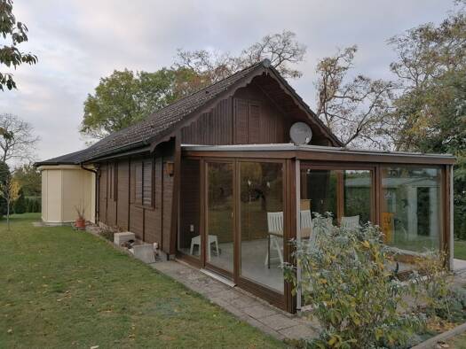 Zum Verkauf steht ein Grundstück mit ca. 498 m². Auf dem Grundstück befinden sich eine Doppelgarage mit Anbau sowie eine überdachte Sitzecke und ein Fischteich. Der Anbau beinhaltet einen kleinen Rau...