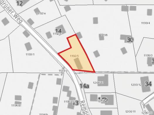 Grundstücksgröße: ca. 888 m², Flurstück 1192/5 Teilweise ebenes, teilweise hängiges Grundstück, im westlichen Teil derzeit mit einem leerstehenden, massiven Garagenflachbau mit Metallschwingtoren beb...