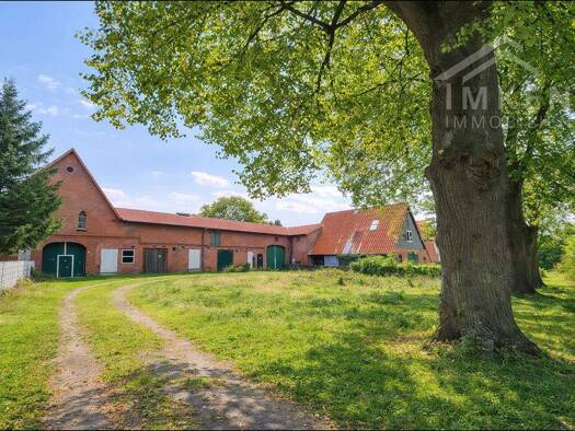 Das angebotene Grundstück ist mit einem ehemaligen Resthof bebaut, der aus einem historischen Gebäude mit rotem Ziegelmauerwerk sowie einem später angebauten Wohntrakt besteht. Die vorhandene Bebauun...