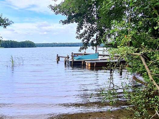 Auf dem großen Seegrundstück am Schwedtsee befinden sich mehrere separate Gebäude und Anlagen. Gleich am Eingang zum Grundstück steht rechts ein Bungalow, weiter folgen auf der rechten Grundstückssei...