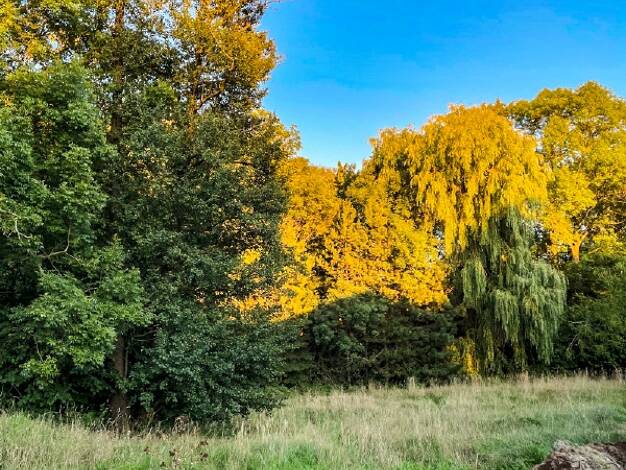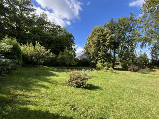 Das Grundstück liegt nahezu eben. Die Mitte wird von zwei großen Laubbäumen geprägt. Zur Straße hin stehen auch kleiner Gehölze. Im östlichen Teil steht der eingeschossige Bungalow. Dieser wird einer...