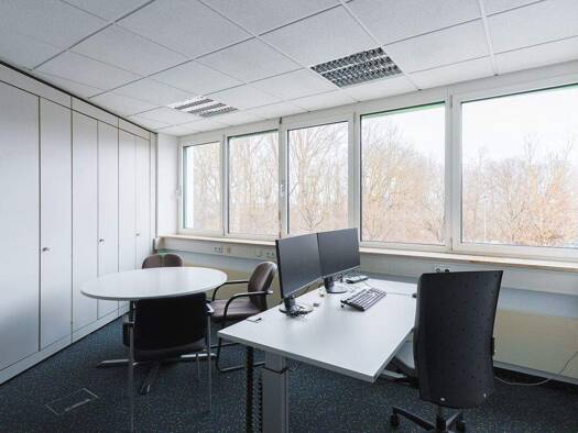 Bürogebäude - Massivbau, Baujahr: 1992 UG, EG und OG jeweils zwei Büroeinheiten und DG mit 2 Wohnungen Massivbau (unterkellert), Ziegelwände mit Massivdecken, Stahlbetontreppen mit Steinbelag, normal...