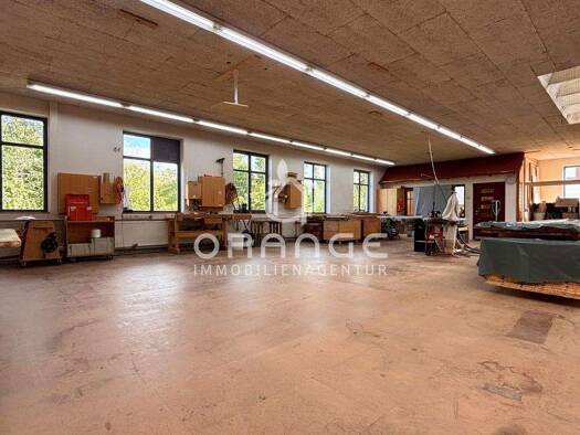 Einteilung: Werkstatt/Büro = 553 m² Anbau Werkstatt = 410 m² Verkaufsraum = 220 m² Abstellhalle = 457 m² In Summe von ca. 1600 m². Weiterhin eine Betriebsleiterwohnung mit ca. 115 m²