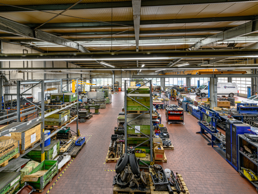 Reparaturhalle ca. 1000 m², Lagerhalle ca. 1000 m², Büro und Teilelager ca. 600 m²