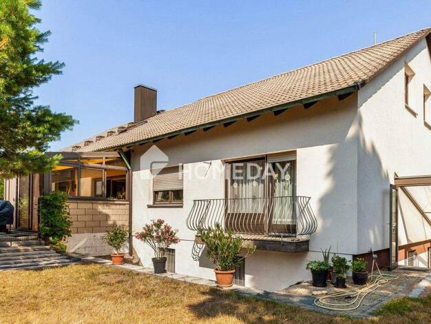 Das Highlight ist das große, eingewachsene Grundstück in ruhiger Waldrandlage. Es würde unter anderem genügend Platz für einen Außenpool bieten. Eine Vergrößerung der Wohnfläche durch Aufstockung wär...