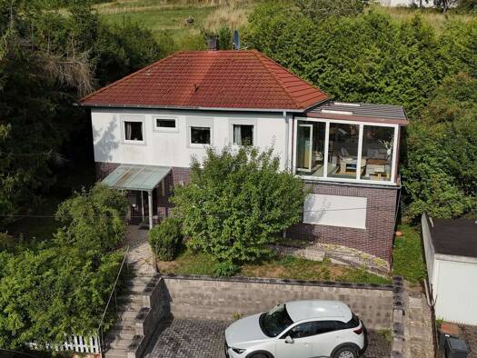 Das Wohnhaus befindet sich auf einem ca. 764 m² großen Grundstück in schöner sonniger Lage am Rande eines Wohngebietes mit angrenzend Feldern, Wiesen und Wald – die Natur vor der Haustüre! Im Ortstei...