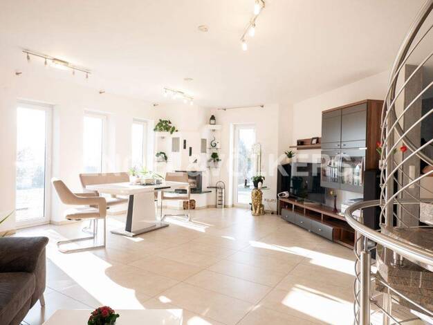 Dieses außergewöhnliche Anwesen in Bad Kissingen vereint Großzügigkeit, Eleganz und ein Wohngefühl der besonderen Art. Bereits beim Betreten spürt man die offene, lichtdurchflutete Architektur, die j...
