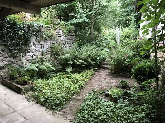 Das zweigeschossige Wohnhaus ist Teil eines denkmalgeschützten Hofensembles aus dem 19. Jahrhundert, mit vier Hauptgebäuden, mehreren Nebengebäuden und Gärten um einen gemeinsamen Hof. Das Erdgeschos...
