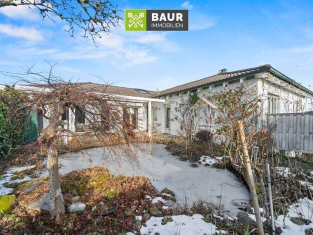 Dieser teilunterkellerte L-Bungalow in klassischer Atriumhaus-Bauweise vereint ruhiges Wohnen, durchdachte Architektur und eine erstklassige Lage. Das Haus befindet sich in der äußerst beliebten Rave...