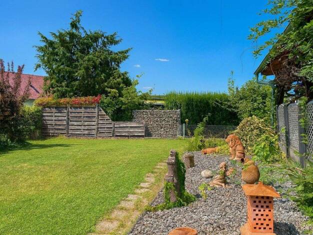 Architektur und Bauweise Errichtet als Weber-Fertighaus in bewährter Holzständerbauweise, mit einem massiv gebauten Kellergeschoss, vereint dieses Haus Qualität, Langlebigkeit und wohnliche Wärme. Ra...