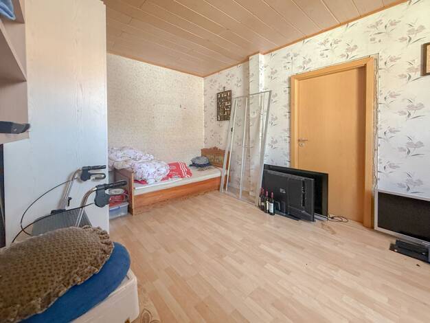 Zum Verkauf steht ein freistehendes Einfamilienhaus mit schönem Garten, verteilt auf zwei Etagen und drei Wohn-/Schlafräumen. Zum Objekt gehört ebenfalls eine Einzelgarage und ein Nebengebäude. Eine ...