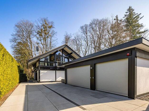 Ein erster kurzer Überblick: » Großzügiges Hanghaus mit besonderer Architektur » Hanglage mit Weitblick » Aufzug von der Garage bis ins Obergeschoss » Heller, großer Eingangsbereich » Helle Küche mit...