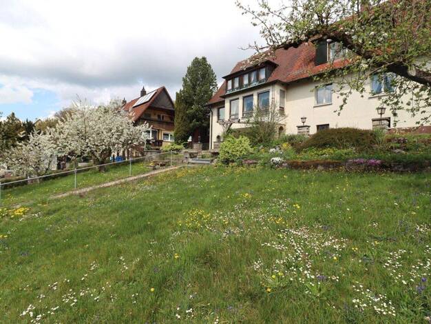 Wohnen auf dem Land in ruhiger Lage. Das großzügige Zweifamilienhaus aus dem Jahr 1959 wurde 1982 durch einen Anbau vergrößert. Das Zweifamilienhaus präsentiert sich auf einem ca. 887 m² großen und u...
