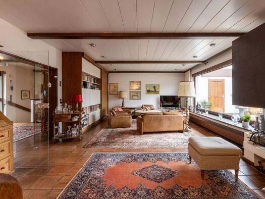 Das 1971 erbaute Einfamilienhaus mit Einliegerwohnung wird über eine eigene Einfahrt mit elektrischem Rolltor erschlossen. Auf ca. 215 m² Wohnfläche und insgesamt ca. 340 m² wohnlich genutzter Gesamt...