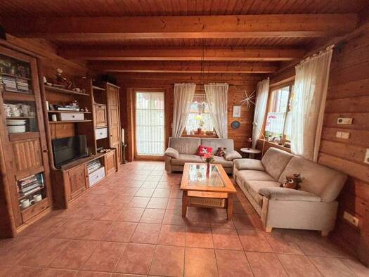 Auf einem ca. 669 m² großen Grundstück befindet sich dieses im Jahr 1997 errichtete Wohngebäude in Blockhausbauweise aus Leimholzbalken. Die massive Holzbauweise verleiht dem Haus nicht nur einen bes...