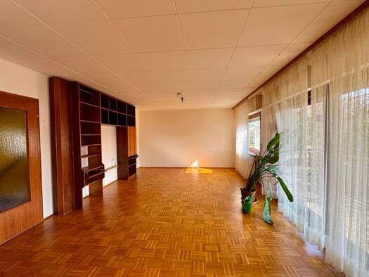 Das 1972 erstelle hochwertige Massivholzaus der Firma Streif vermittelt schon beim Betreten einen gepfegten Eindruck. Ein großer, heller, zweigteilter Wohn-/Essbereich mit über 48 m² Fläche bietet ei...