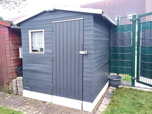 Lang gestrecktes großes Grundstück mit Doppelcarport, Garten, Abstellflächen und Nebengelass. 2 Wohnhäuser: Haus 1, ca. 60,00 qm, Wohnzimmer mit Kaminofen und offener Küche, Bad mit Dusche und Fenste...