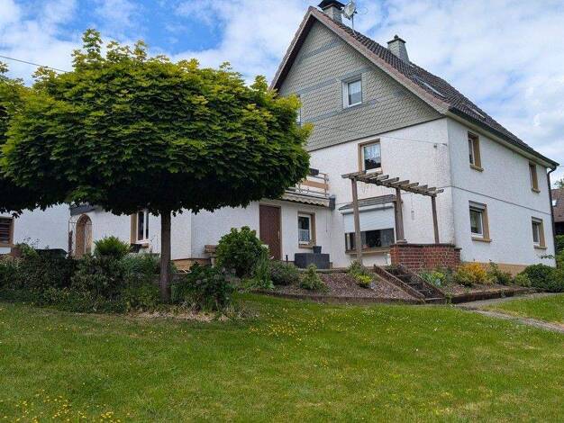 Geräumiges Zweifamilienhaus mit Potenzial für kreative Lebensfreude Dieses großzügige Zweifamilienhaus mit Einliegerwohnung aus dem Jahr 1970 bietet Ihnen die seltene Gelegenheit, Wohnraum nach Ihren...