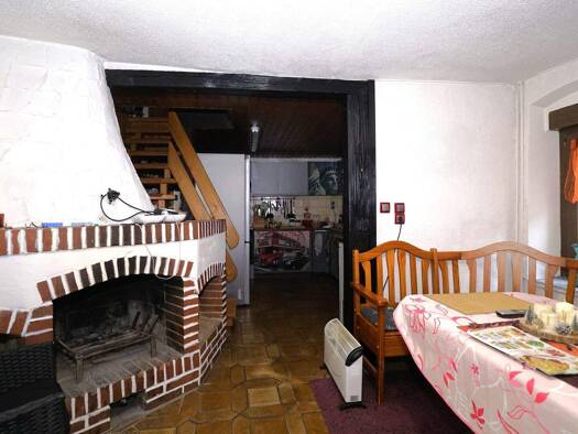 Im Erdgeschoss befindet sich die ehemalige Küche ,das Wohn- und Esszimmer und ein Bad . Zwei Zimmer , ein Bad , eine Küche und der Wintergarten sind im Obergeschoss untergebracht . Ein zusätzliches Z...