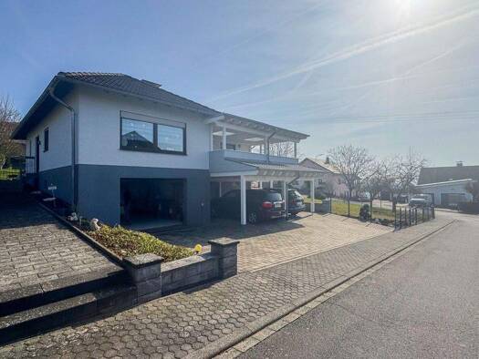 Freistehendes Einfamilienhaus mit Doppelgarage, massiv gebaut, mit Garten und traumhaftem Blick, in ruhiger Ortsrandlage. Bezogen wurde diese Immobilie erstmalig im Jahr 2000 und stetig modernisiert....